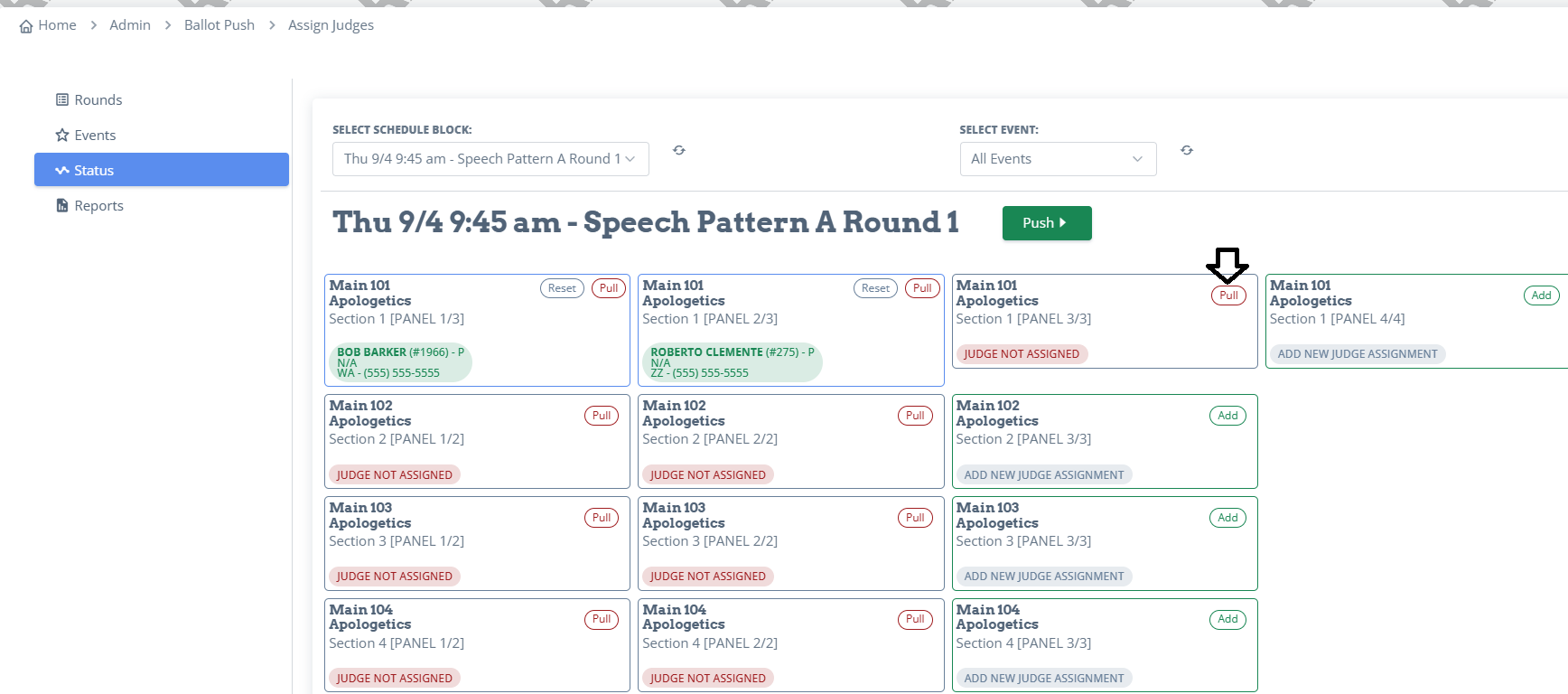 Important If there are 3 judges scheduled for a room, and you only push 2 judges, Ballot Push need to "Pull" the 3rd ballot. There are 2 ways to do this.