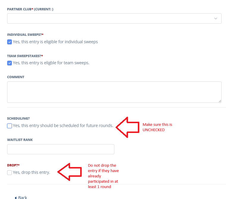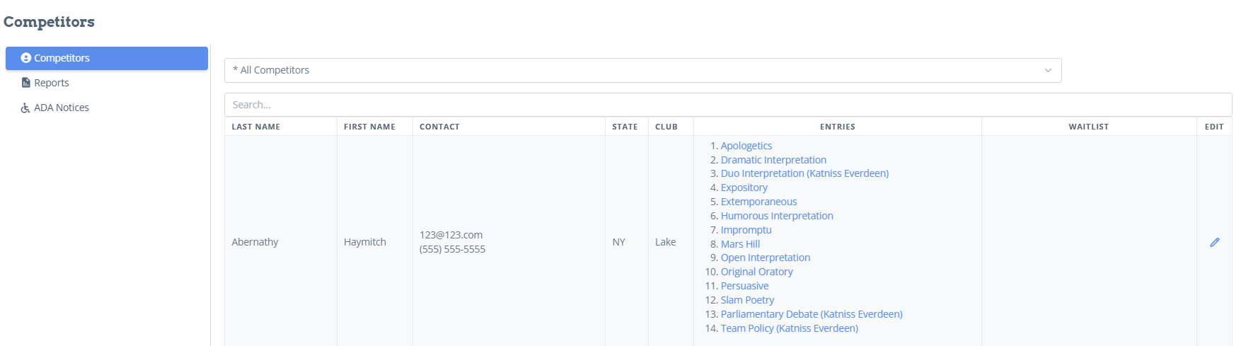If the tournament has already started and the student has already competed in their events for at least 1 round, use the method below.