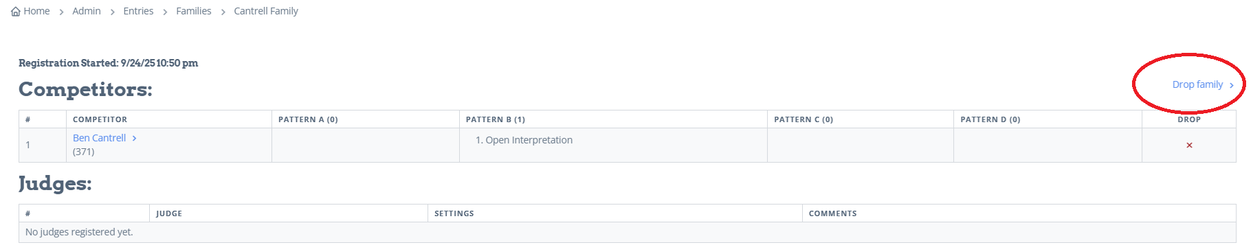 If the student and their family have dropped completely, go to Admin-Entries-Families. Click on the family and click "Drop Family". This will also remove their judge entries as well.