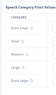 The second category is the Speech Category Point Values. These are the suggested default values. You can change any of them to whatever you want.